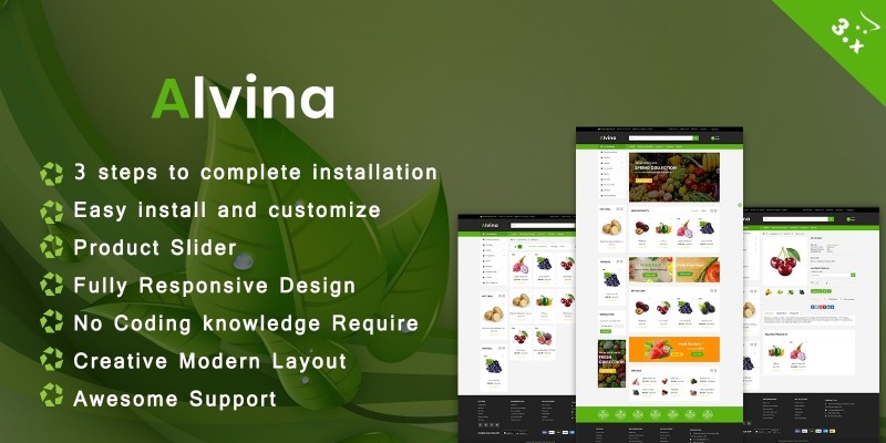 Farm, Organic shop. Alvina opencart theme comes with fully responsive,clean and elegant design and also additional features like product viewwith additional images slider, testimonials, cms banners, shippingmodule, latest menu design, Multiple Language Supported, MultipleCurrency Support, LTR and RTL Both Worked Well, Ajax Cart Dropdown,Guest Checkout,quick view, secondary image on mouse hover, COD OrderFunctionality, Blog Integrated, CMS module and many more…